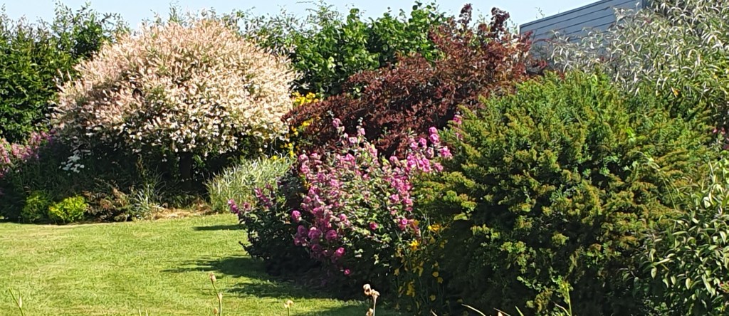 – Salon de jardin avec transats et parasol – Garden furniture with deckchairs and parasol